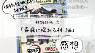 明治村×鬼滅の刃謎解きの感想!特別任務参「供物消失の村編」の難易度や所要時間を解説。ギミック満載のキットは面白さ抜群!全域移動のコツも紹介する体験記です。